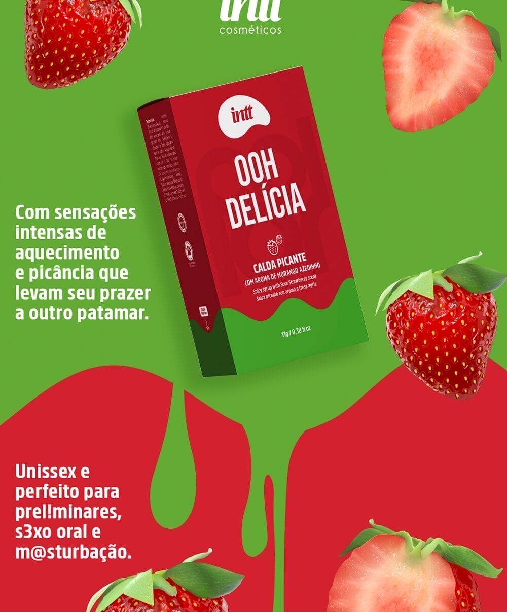 A calda Ooh Delícia sabor morango traz uma experiência única de sabor e sensações. Com efeito picante e um toque ácido, desperta o paladar e torna os momentos íntimos ainda mais excitantes.