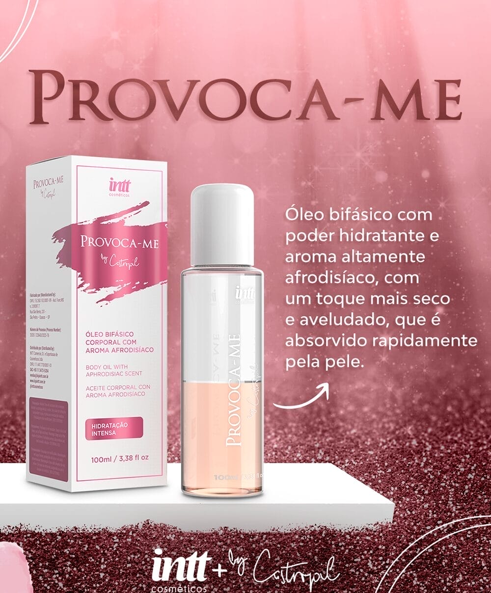 O óleo bifásico Provoca-me foi criado para proporcionar uma experiência única de massagem, deixando a pele macia e perfumada com um toque sensual. Seu aroma afrodisíaco desperta os sentidos e transforma cada toque em puro prazer.