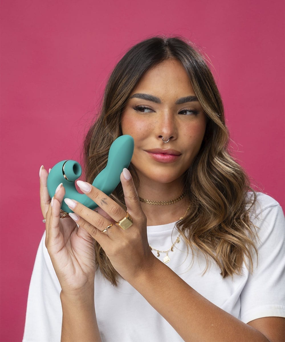 Esse brinquedo é o queridinho de todas porque não economiza em estímulos. Com tripla função para clitóris e ponto G, ele combina sucção com vibração pulsante e tapping no meio – uma espécie de dedilhada irresistível que vai direto ao ponto. Seu design anatômico e toque aveludado fazem tudo fluir, do início ao ápice. Um verdadeiro espetáculo sensorial para quem quer sentir tudo ao mesmo tempo.