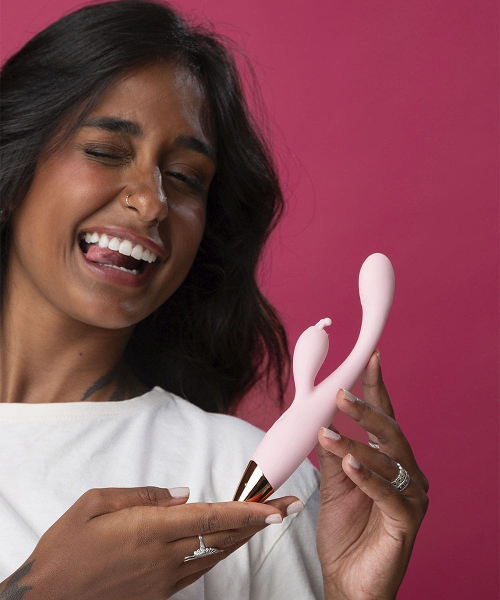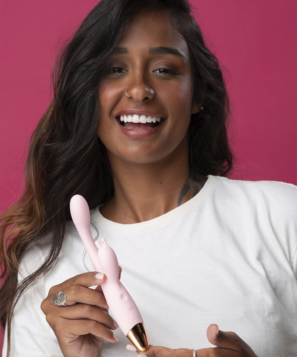 Esse vibrador traz o melhor da inovação para o prazer: vibração intensa e aquecimento localizado para estimular tanto o clitóris quanto o ponto G ao mesmo tempo. Com um design minimalista e uma textura aveludada, ele intensifica os sentidos de maneira única.