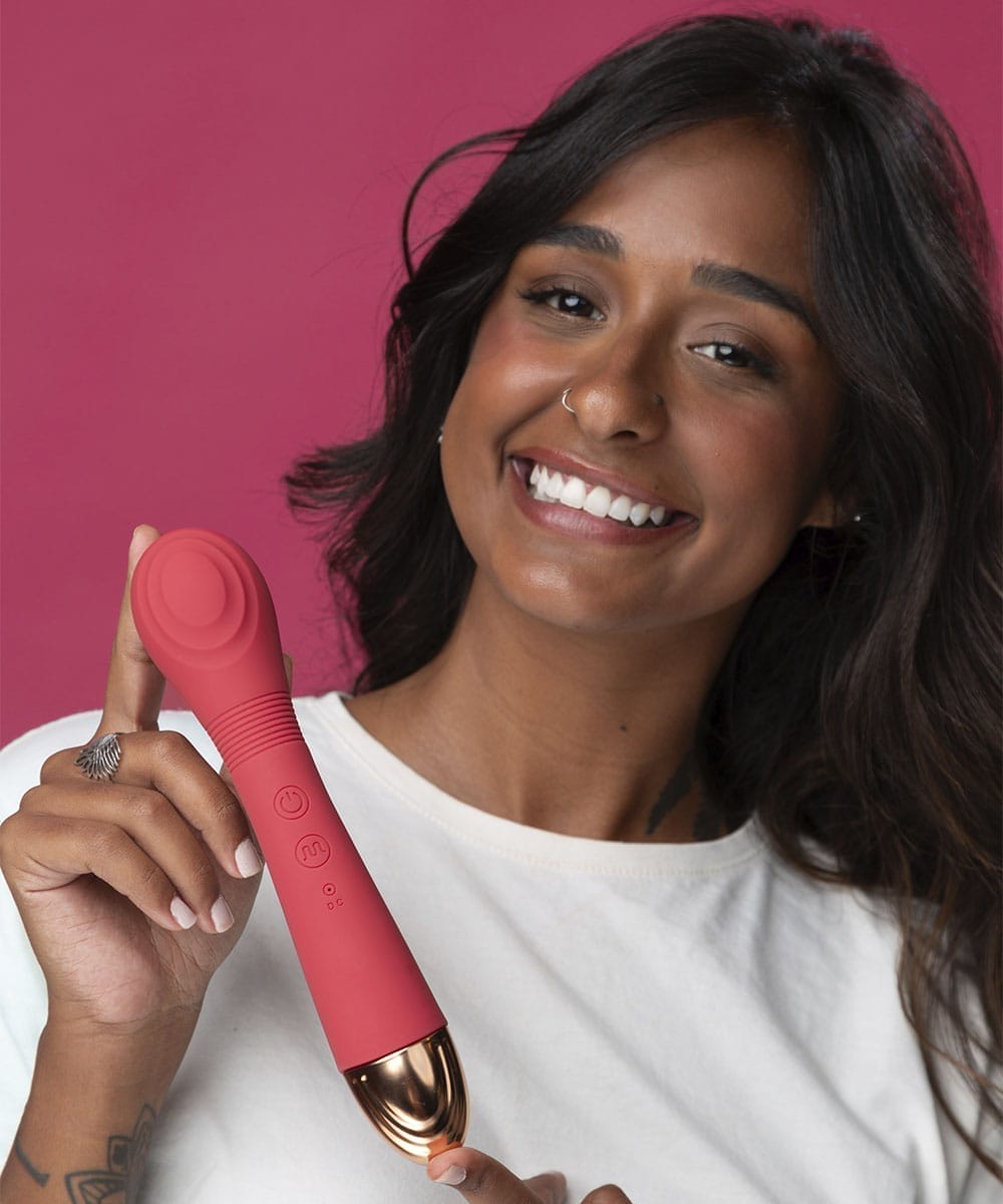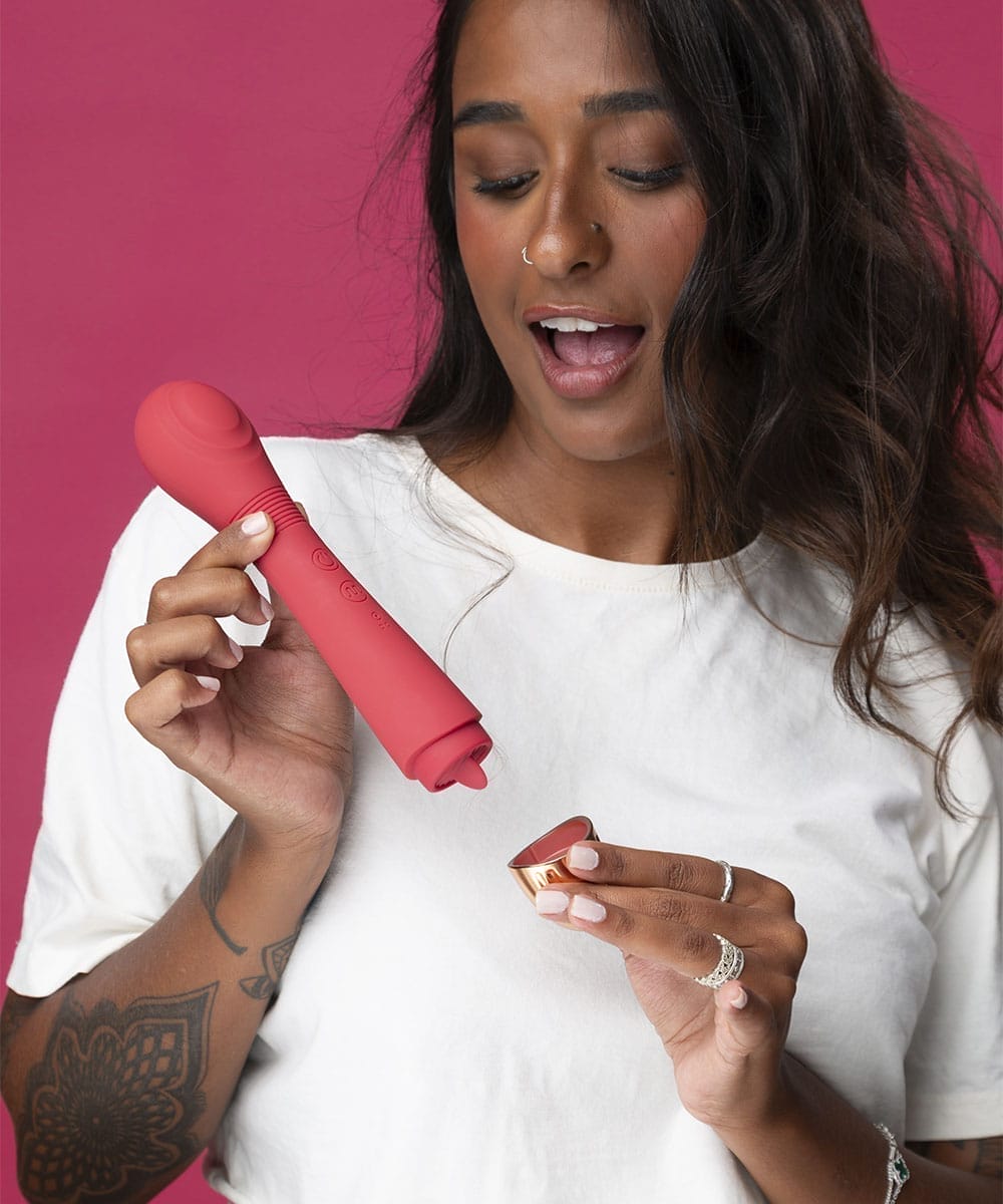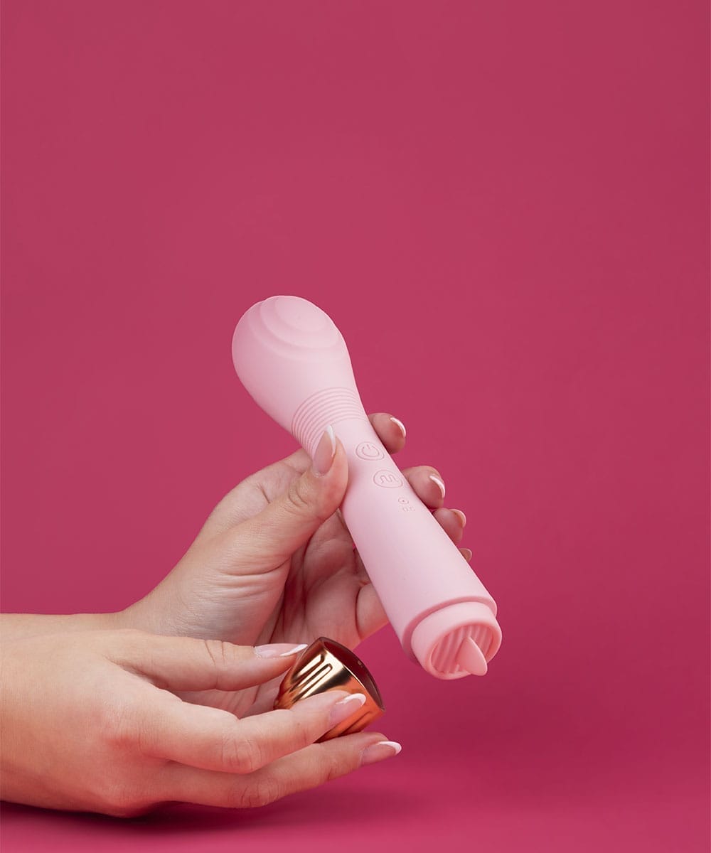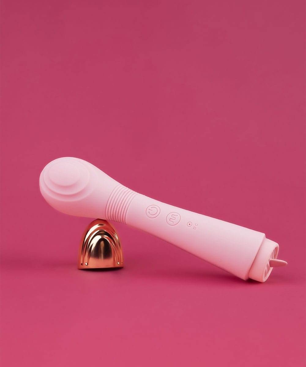 Esse vibrador combina um corpo texturizado com uma linguinha vibratória para estimular tanto o clitóris quanto o ponto G.  Ideal para explorações sensoriais intensas.